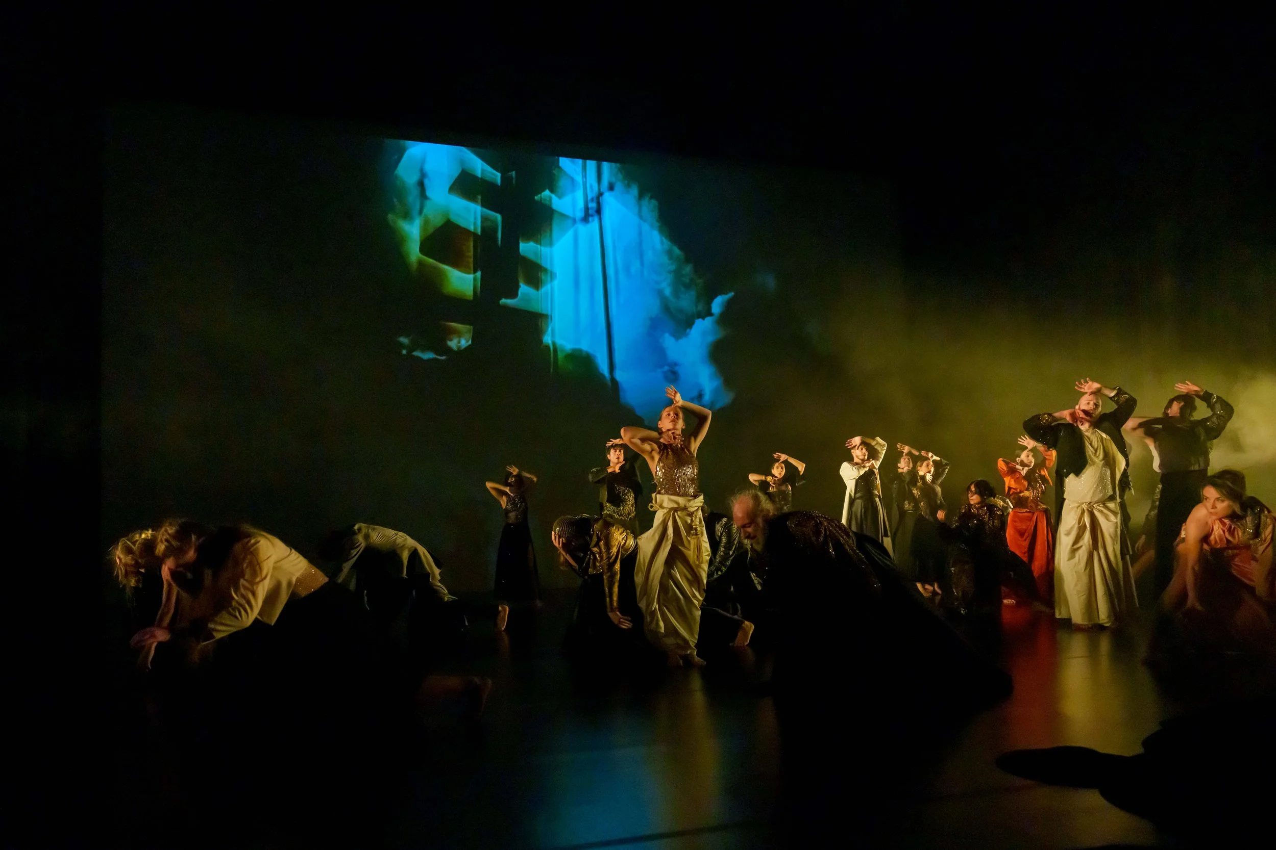 Lastly the original immersive visual projections, transformed the stage into something fluid and unstable—a shifting canvas that the dancers moved within and against. Photographing these moments required a careful negotiation: exposing for the performers without losing the texture of the projected art. Through the view finder, at times this could be quite hypnotic and I had to frequently remind myself not only to watch but remember to capture too.